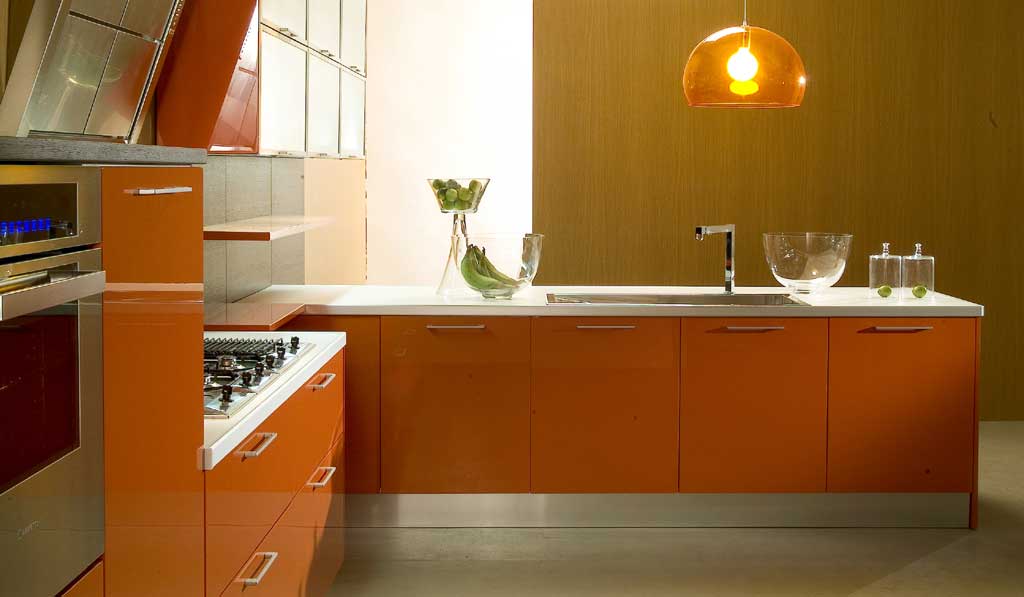 Need more home deco ideas? View more Di Lorio Cucine Orange Kitchen with Chandelier and Awesome Orange Kitchen Designs images: