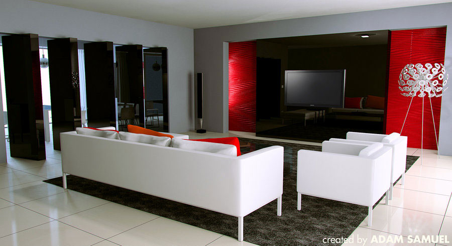 Need more home deco ideas? View more White Sofas Lounge with Red Wall Decoration and Modern and Colorful Living Rooms Inspiration images: