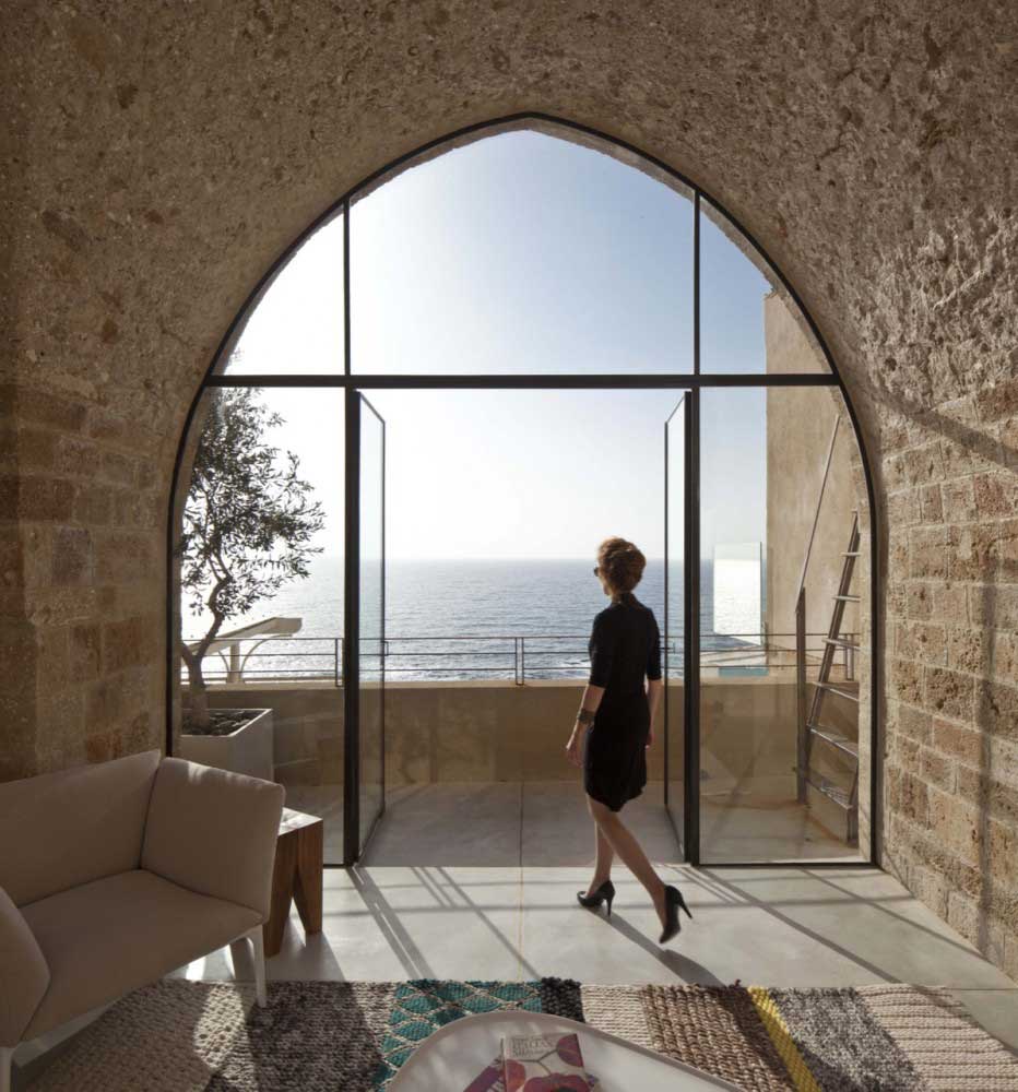 Need more home deco ideas? View more Balcony with Large Window Sea Siew and Castle Design of New Jaffa Apartment in Tel Aviv images: