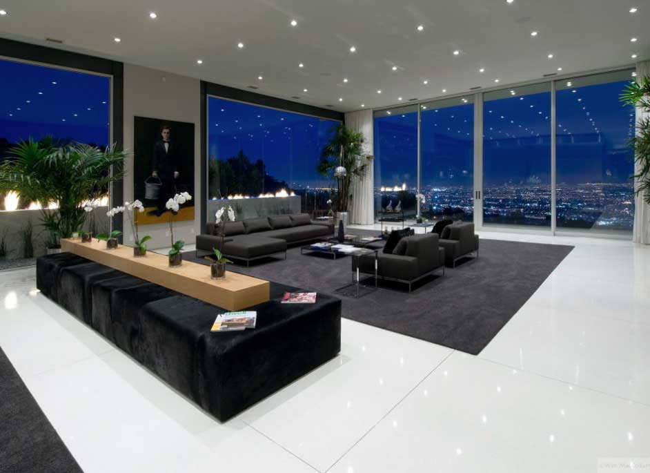 Luxury Living Room with Large Glass Wall Ideas