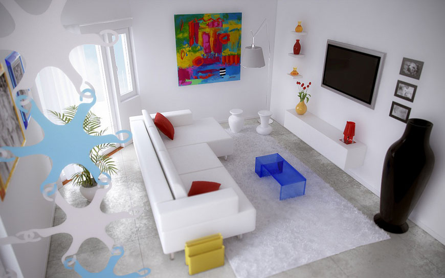 Amazind Modern Living Room with White Couch and LCD TV – from Pixel3D Studio