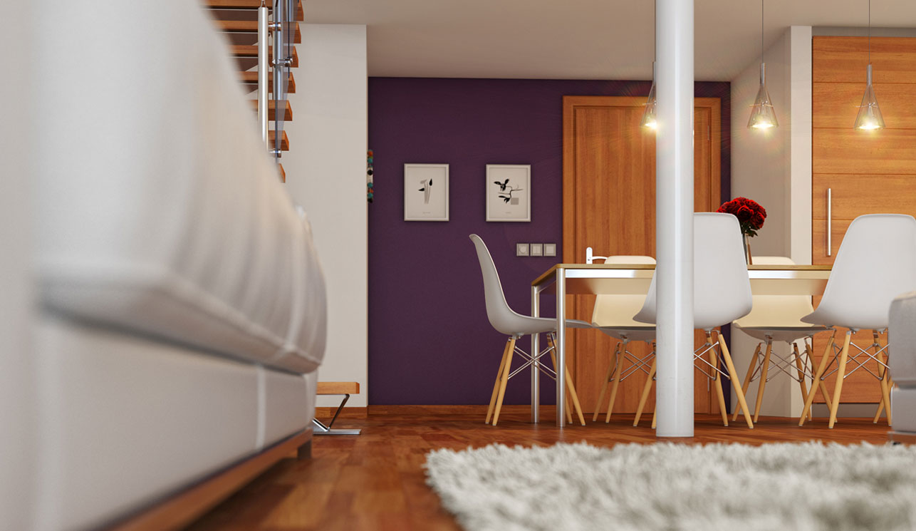 Beautiful Dining Area with Wall Purple Color – Quick Round Up Living Rooms. Loft living and dining