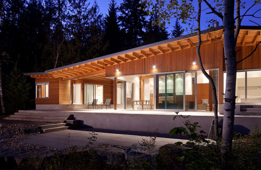 The Front Side of Shuswap Lake Cabin by Splyce Design Night Situation