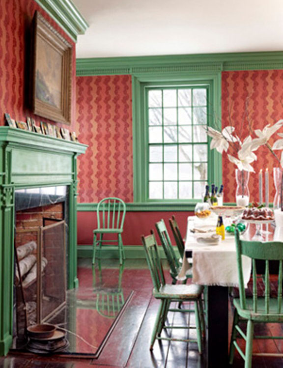 Green and Red Dinning Room with Fireplace .Fresh christmas decorating ideas