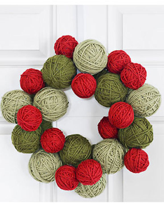 Wool Round Christmas Decor in Red and Green Color. Fresh christmas decorating ideas. Woollen christmas decorations