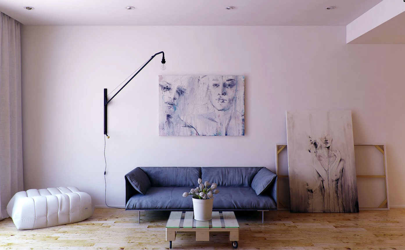 Minimalist living room with cool wall painting by Saint-Petersburg, Russia based architect Oleg Trofimov.