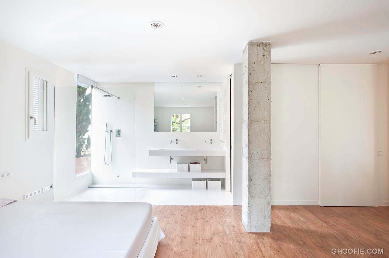 You are viewing our image titled Open Minimalist Bathroom Interior Design. This photo is part of our article about Modern White Interior of Bonanova Apartment. For more information and inspiration about Modern White Interior of Bonanova Apartment be sure to visit that page.