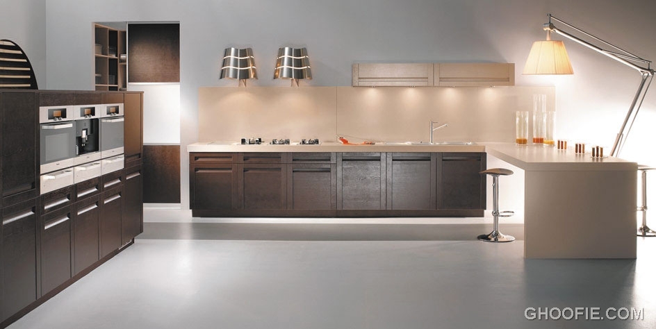 The type of oak this modern kitchen is made of is pretty a awesome. Elegant kitchen with ceiling light.