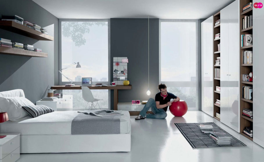 Grey and White Contemporary Teenagers Room Design Ideas. Room design ideas for teenagers.