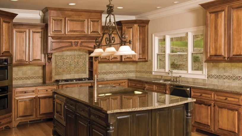 Classic Chandelier Marble Kitchen Countertop Wood Cabinet Tile Kitchen Backsplash
