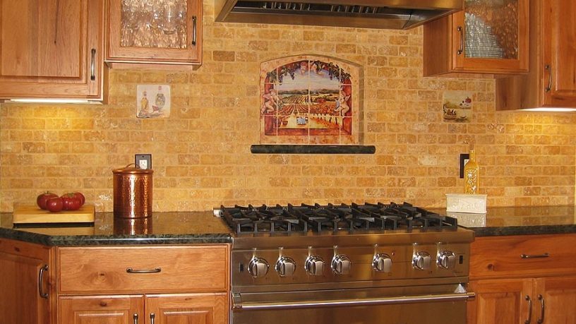 Pretty Tile Kitchen Backsplash with Artistic Painting